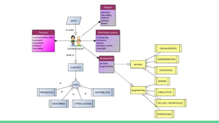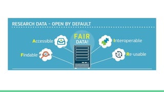 The document discusses the role of libraries in developing physical and virtual spaces dedicated to data management, highlighting various resources and initiatives in the field. It touches upon data access, preservation, and the importance of open science, referencing the European Commission's recommendations on scientific publications and data management. Additionally, it points towards specific events and organizations involved in promoting linked open data and digital humanities.