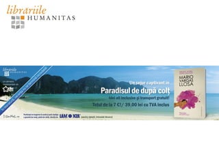 Documentul descrie o serie de evenimente culturale și lansări de carte organizate de librăriile Humanitas, care au inclus activități inovatoare precum călătorii imaginare prin cărți și prezentări de rock de legende. A avut loc o premiere în marketingul cultural, unde 5 cărți dintr-o colecție au fost lansate printr-un spectacol improvizat pe scenă. Activitățile culturale au avut un impact pozitiv asupra comunității locale, atrăgând un public numeros și contemplând interacțiunea inedită cu cărțile.