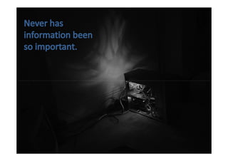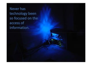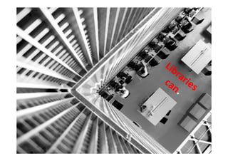 The document promotes the value and importance of libraries in today's digital world. It notes that more information is being created than ever before, so libraries are needed to help people navigate information overload. Libraries can help people access and use information from the internet as well as provide educational and job resources. The key message is that now, more than ever, libraries and librarians are vital to help people effectively use and understand information.