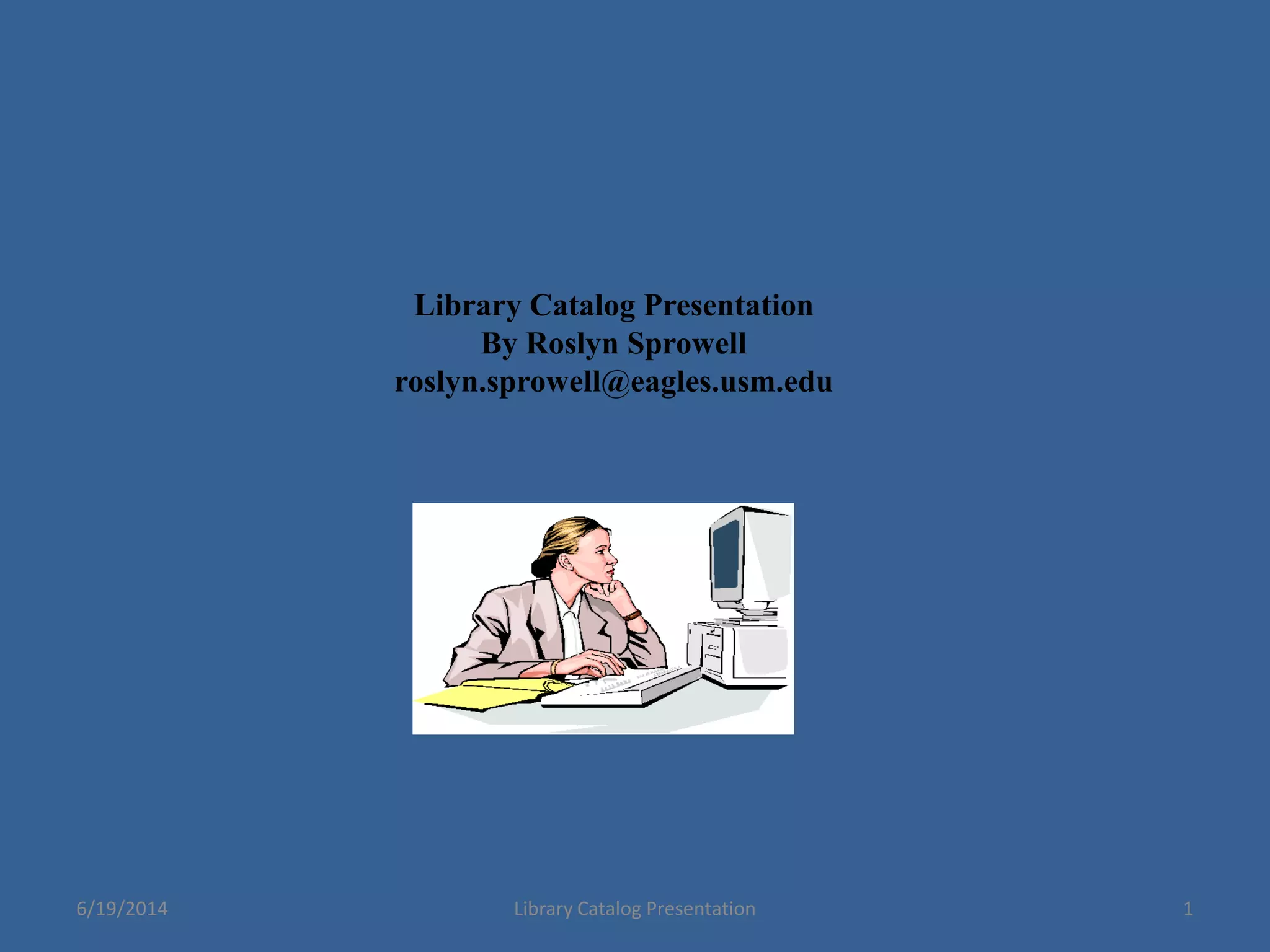 This presentation discusses library cataloging fundamentals. It begins with an overview of basic cataloging concepts such as organizing information in a logical way to facilitate access. It then discusses different cataloging rules for various formats and containers for records like databases and library catalogs. Finally, it touches on cataloging tools and standards like MARC and metadata, providing tips and resources for cataloging.