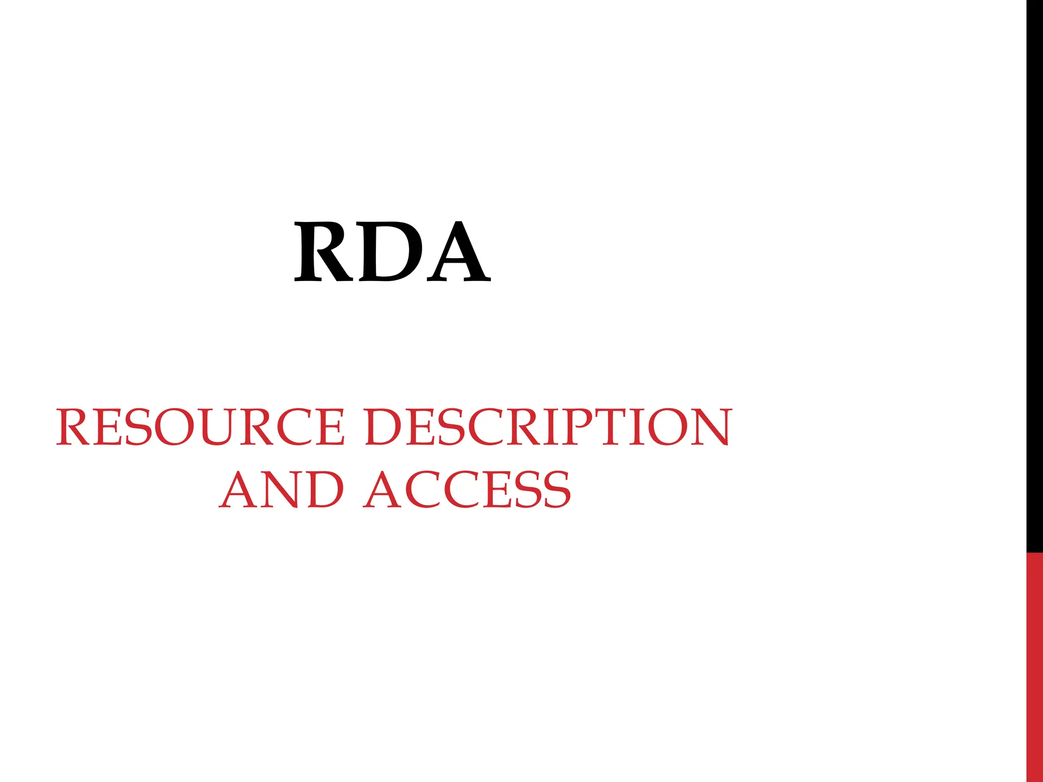 RDA was developed to address limitations in AACR2 for cataloging resources in the digital environment. It is based on FRBR and FRAD conceptual models and aims to improve resource discovery. RDA is more flexible, international, and expanded in scope compared to AACR2. It is developed through international collaboration and is designed to accommodate new formats and user needs on the web.