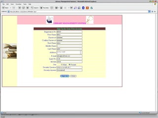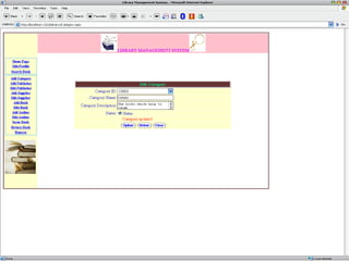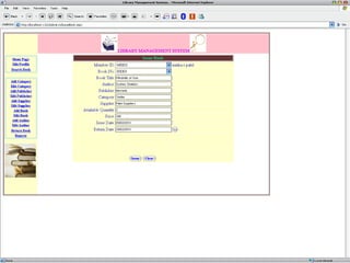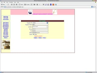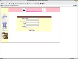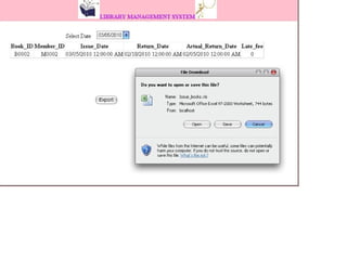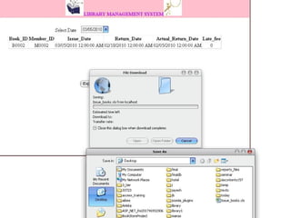 The document provides information about a library management system project for an education institute. It discusses the need to automate the library's processes to make it more efficient. Some key points include:
