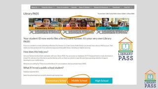 Library PASS allows students in Cobb County to use their student ID number as a library card to access the Cobb County Public Library system's resources. Students can check out books, use computers and WiFi, and access online databases. To log into the online databases, students enter their 4-digit student ID number and a 4-digit PIN based on their birth month and date. All Cobb County school digital libraries provide a link to the Library PASS portal at www.cobbcat.org/librarypass.