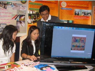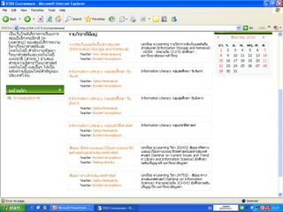 ้ ้ ทาให้เกิดความรู้และความเข้าใจมากยิ่งขึ้น ส่วนที่ไม่ได้เรียนหรือ ตามไม่ทัน ก็เข้าไปศึกษาได้ด้วยตนเอง 2. กระดานสนทนาออนไลน์ ทาให้แลกเปลี่ยนความรู้ ความคิดเห็น โต้ตอบกันได้ในกลุ่มเรียน 3. กระดานส่งการไฟล์บานออนไลน์ ทาให้ส่งการบ้านและดูคะแนนได้ ้ สะดวก ลดการใช้กระดาษ 4. เข้าใช้ระบบและเลือกอ่านบทเรียนได้ ไม่จากัดเวลาและ สถานที่