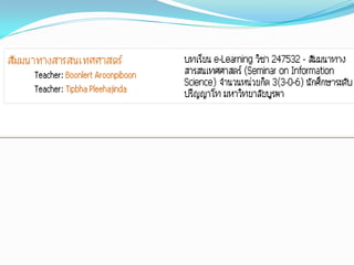 และ ภาควิชาสารสนเทศศึกษา มหาวิทยาลัยบูรพา