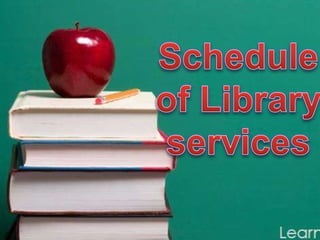 This document summarizes the services and resources available at a library. It describes the library's operating hours, classification system for organizing books, card catalog for finding materials, vertical file for clippings and pamphlets, periodical index, and digital/online resources. The document also outlines rules for borrowing books, computer and internet use, audio-visual equipment usage, and maintaining silence.