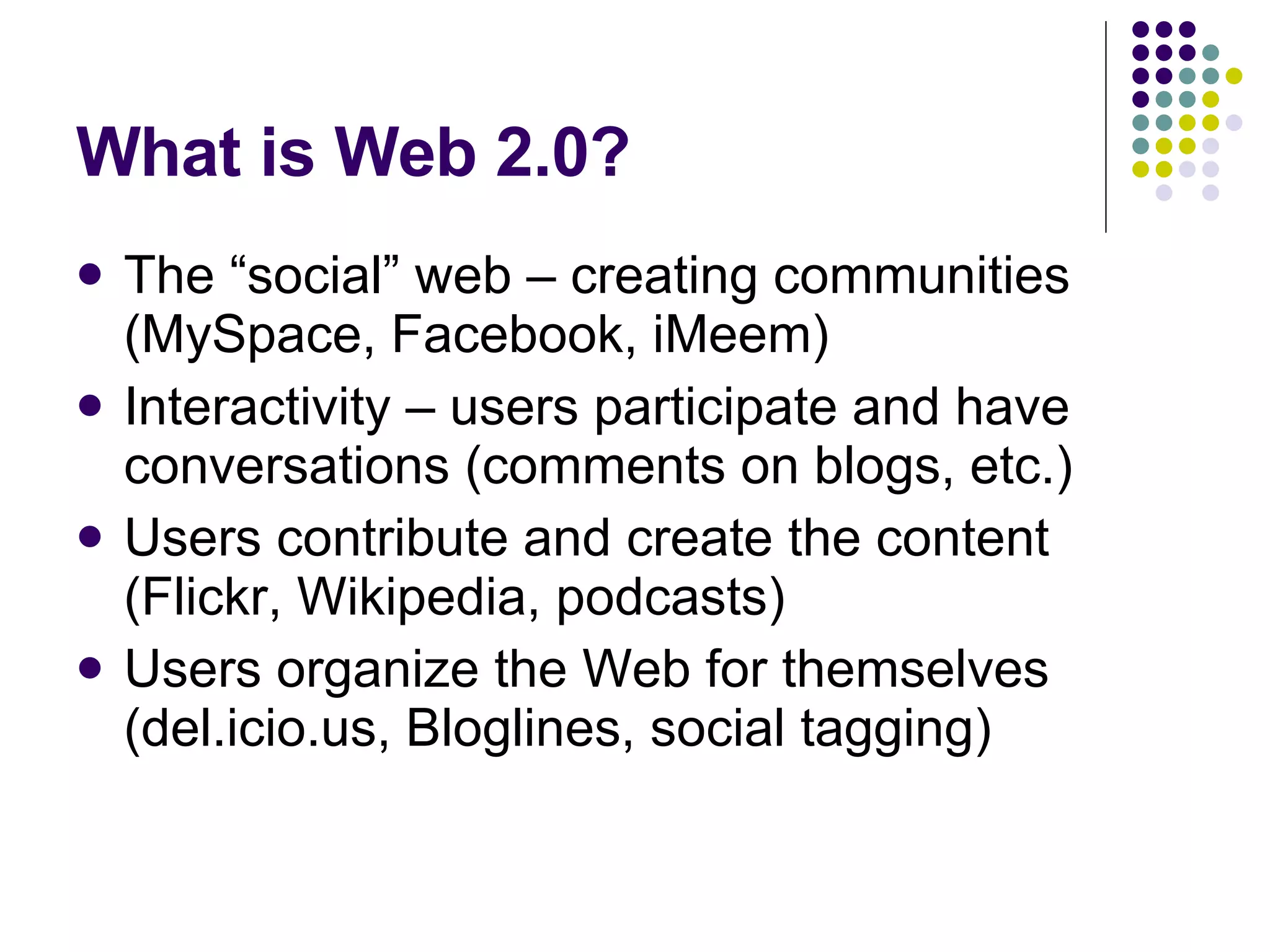 The document discusses ways to make library websites more interactive for users through Web 2.0 tools. It describes three levels of interactivity from static information to fully interactive communities. It then provides examples of easy-to-use tools like blogs, Flickr, polls, and bookmarks that allow users to contribute content, comment, and interact with each other while requiring minimal time from library staff. The document acknowledges challenges in moderating discussions but provides suggestions to engage students within appropriate guidelines.