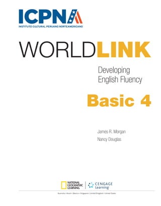 This document provides information about the Worldlink English Fluency series. It includes acknowledgments, a guide to pronunciation symbols, and learning outcomes for Units 10-12 which cover the topics of home, clothing, and jobs. The guide to pronunciation symbols shows the phonetic symbols and their corresponding sounds for vowels and consonants. The learning outcomes list the language functions and skills students will develop in each unit such as describing rooms in a house, shopping for clothing, and asking and answering questions about jobs.