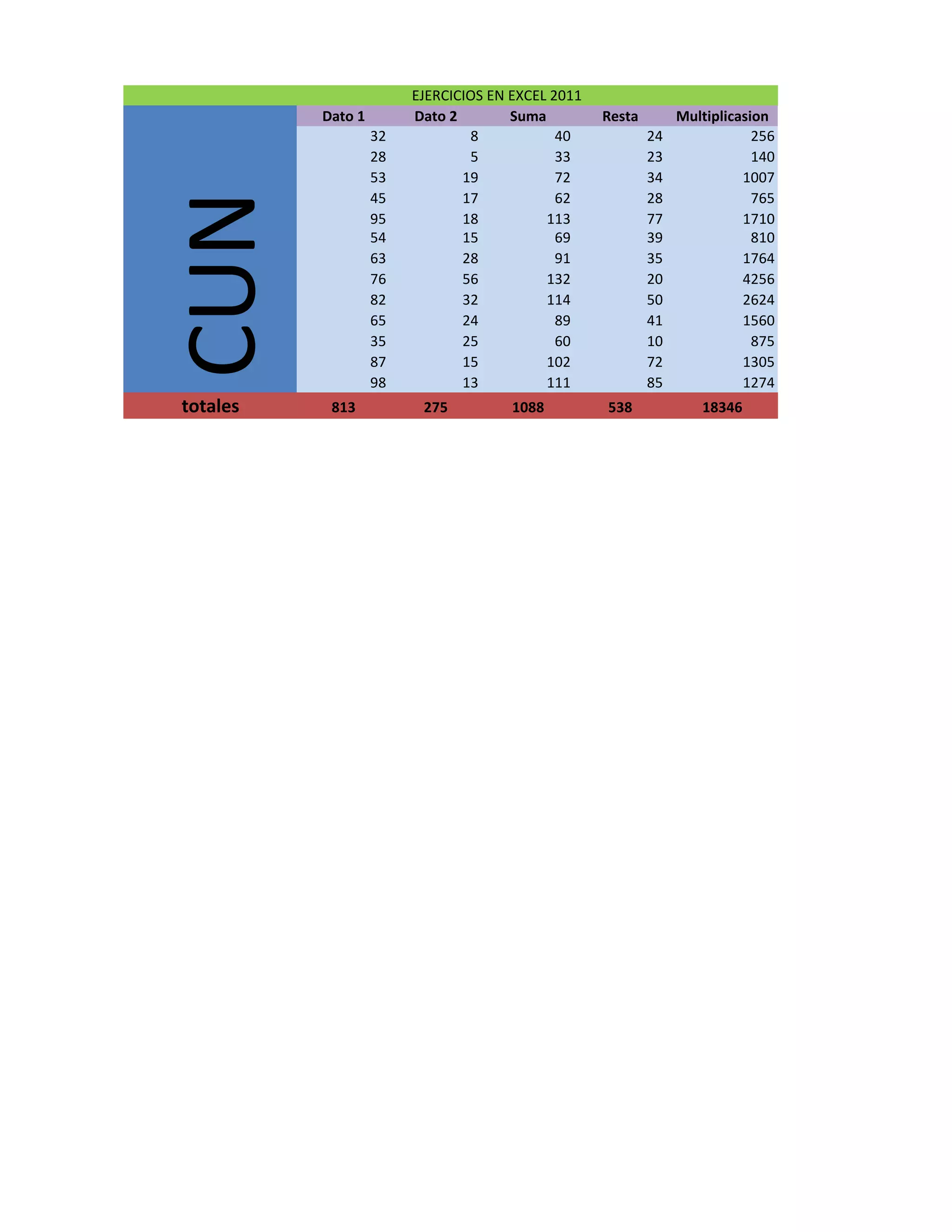 Dato 1 Dato 2 Suma Resta Multiplicasion