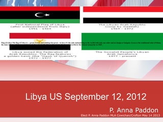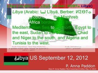 The flag of Libya is solely green in color, making it the only national flag in the world with a single color and no other design or insignia. Green represents Islam, the state religion of Libya, and Gaddafi's "Green Revolution" where he overthrew the Libyan monarchy in 1969. Libya is a country in North Africa bordered by the Mediterranean Sea, Egypt, Sudan, Chad, Niger, Algeria and Tunisia.
