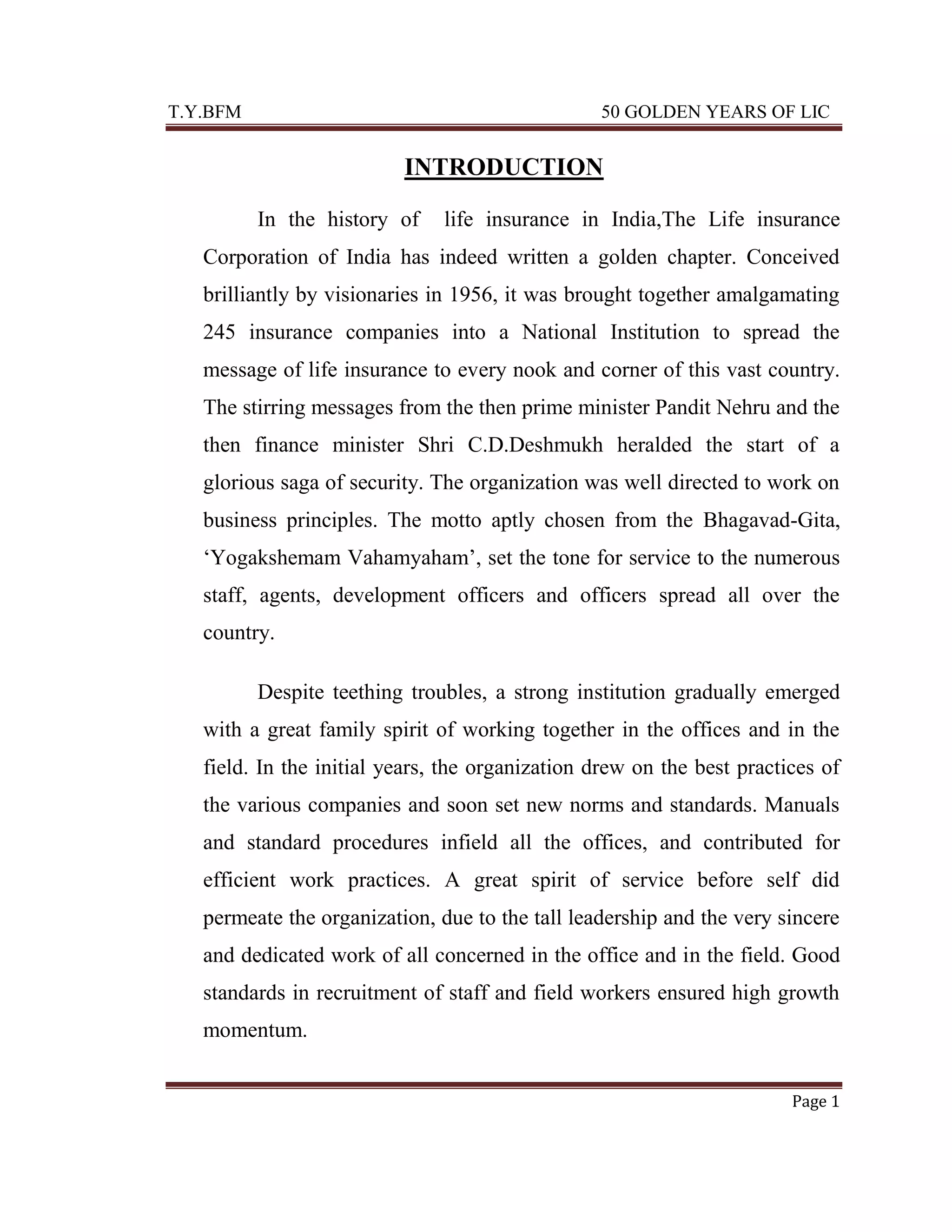 This document provides an overview of the Life Insurance Corporation of India (LIC) over its first 50 years, from its formation in 1956. Key points: