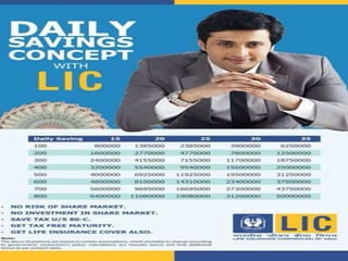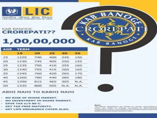 The document outlines the benefits of becoming a LIC agency, including earning more income, securing retirement, and providing financial support to family. It lists various insurance plans such as endowment, moneyback, single premium, pension, and term insurance options available for agents. The emphasis is on increasing sales and helping more individuals while earning through different LIC products.