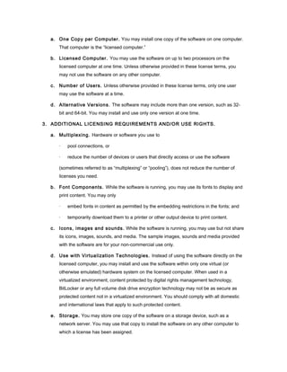 - The software can be installed on one computer and used by one user at a time across no more than two processors.
