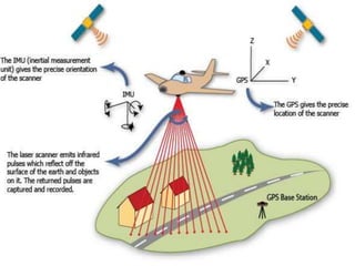 LiDAR is an active remote sensing technique that uses laser light to image objects. It was invented in the 1960s and became popular after being used on the Apollo 15 mission to map the moon's surface. LiDAR works by measuring the time it takes for a laser pulse to be reflected off an object and return, allowing it to create precise 3D models of surfaces and objects. It has numerous applications like terrain mapping, forestry, archaeology and more due to its speed, accuracy and ability to capture dense point cloud data without human involvement. While powerful lasers pose safety risks, LiDAR provides significant advantages over passive imaging and is an important remote sensing tool.