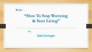 This document contains summaries and key points from Dale Carnegie's book "How To Stop Worrying & Start Living". It discusses rules and strategies for overcoming worry, such as examining the likelihood of worrying events based on past averages, accepting things that cannot be changed, setting limits on worrying about certain issues, focusing on the present, cultivating positive thoughts, counting blessings rather than troubles, and praying. The overall message is that worry can be conquered by applying strategies like these to gain a more peaceful state of mind.