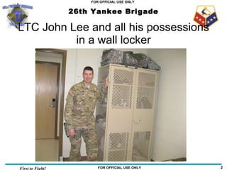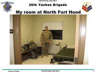 The document provides descriptions of various facilities and locations at North Fort Hood, including soldier barracks, a laundromat, office building, dining facility, vehicles, gym, and port-a-johns. It also lists members of the Resource Management Team and notes that the military frequently uses acronyms.