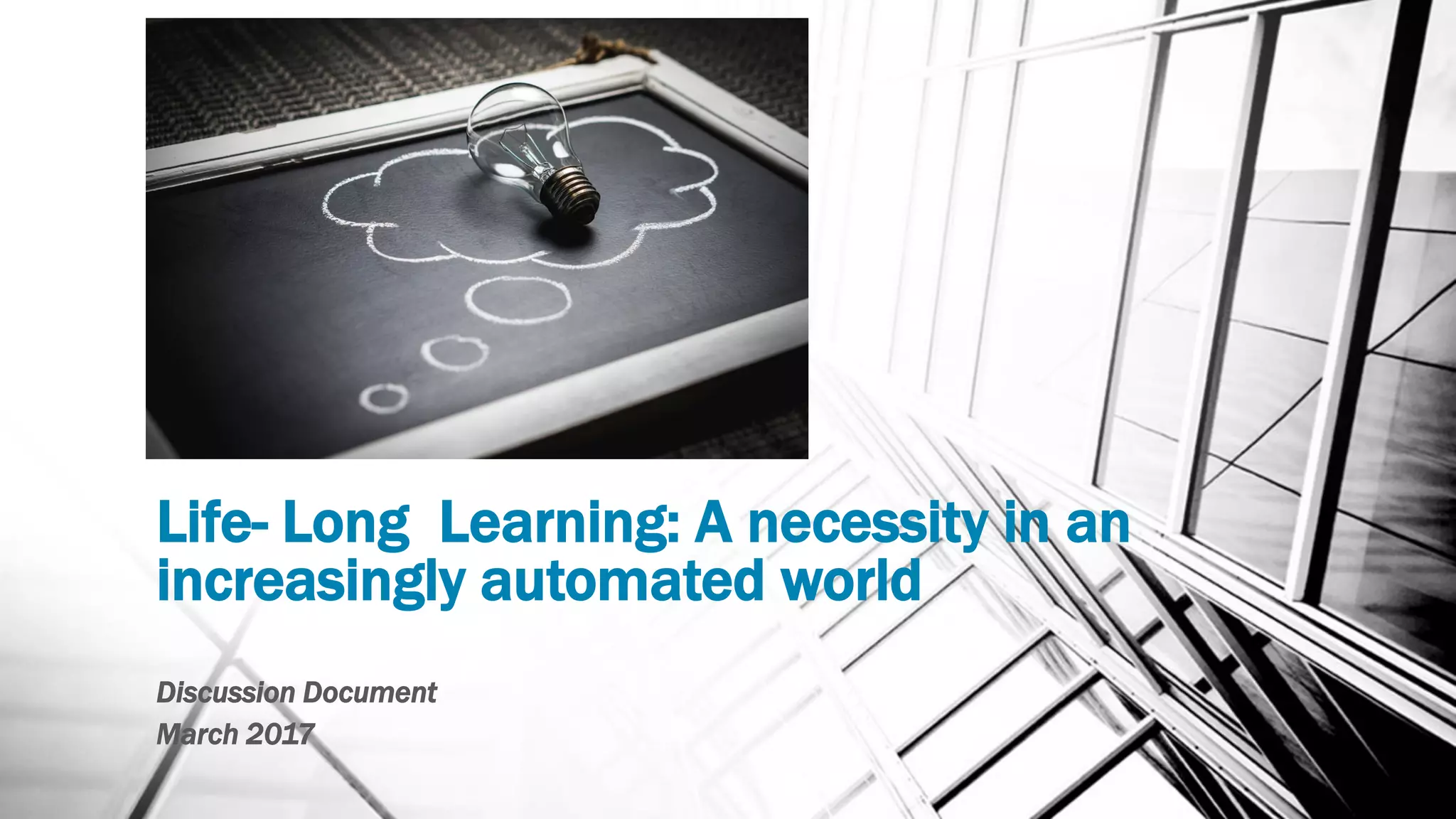 The document emphasizes the necessity of lifelong learning in the face of increasing automation and changing job markets, highlighting the roles of educational institutions, businesses, and government agencies. It notes that 54% of working Americans believe developing new skills is essential throughout their careers. Successful coordination among these three areas is crucial for retaining talent and fostering a competitive workforce.