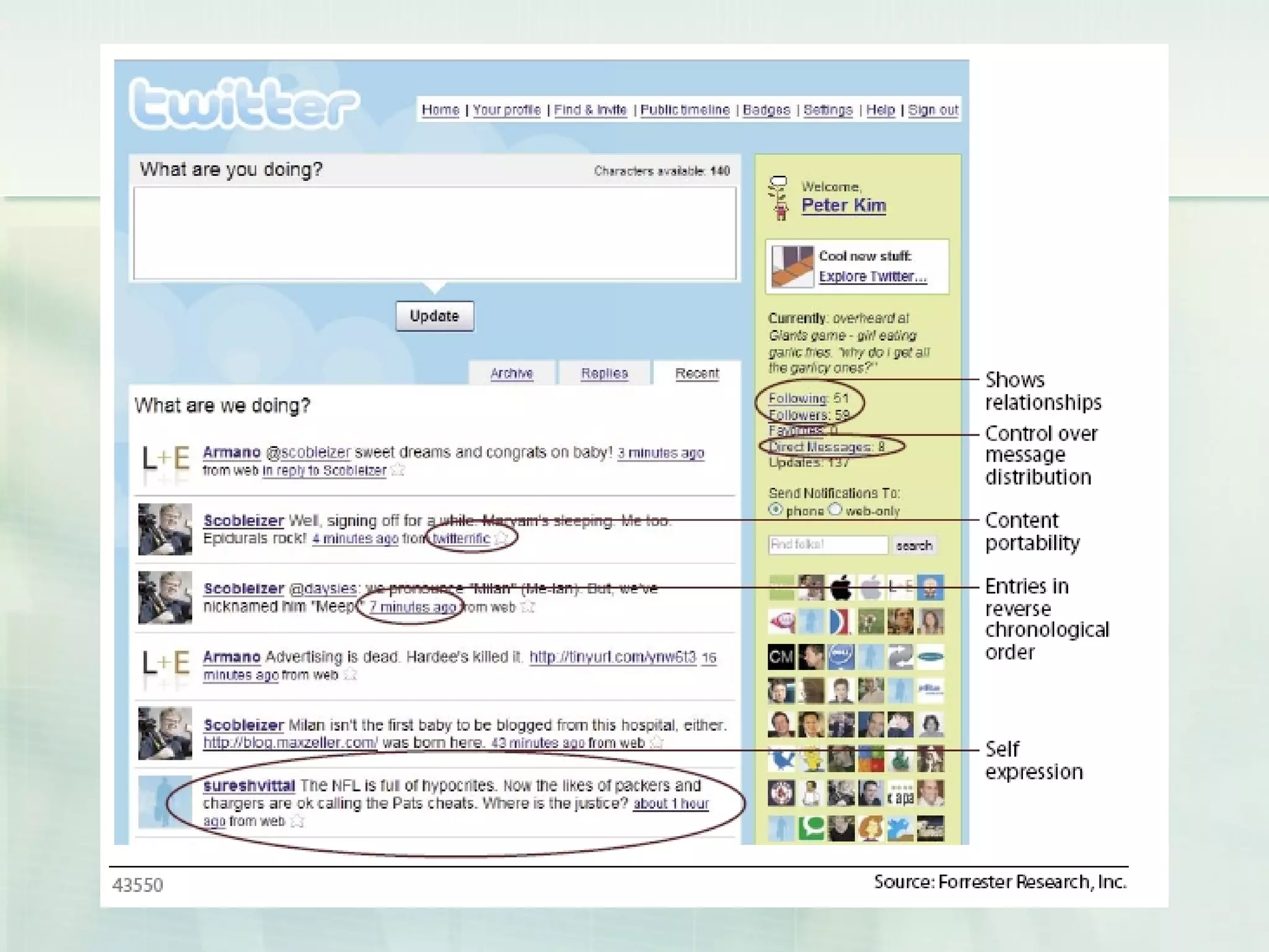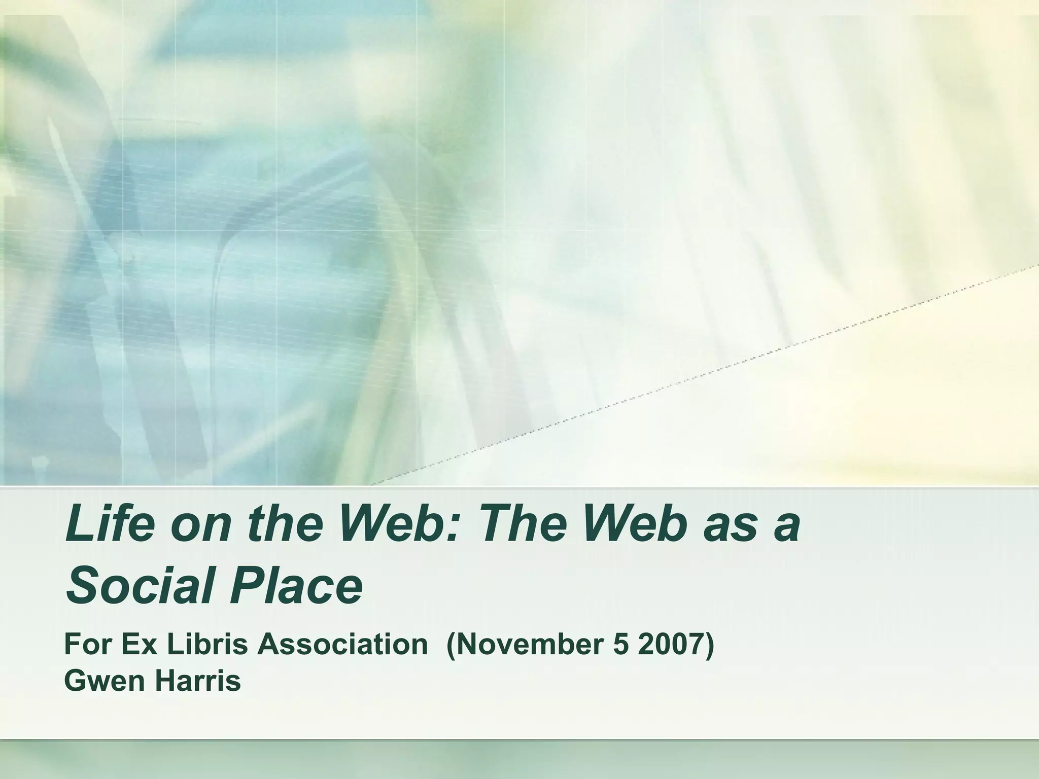 The document discusses the evolution of social interactions online, highlighting the characteristics and habits of digital natives and their use of social networking platforms like Facebook and MySpace. It provides statistics on online activities, particularly among teens, and describes the growth of virtual worlds and online video sharing. Additionally, it notes the increasing significance of online communities in various aspects of life, from education to social connections.