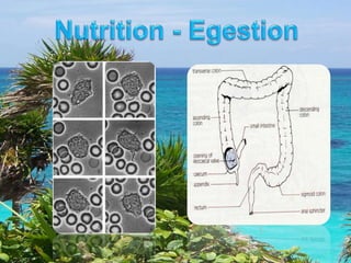 All living things require nutrition and respiration, using oxygen to convert food into energy. The document includes references to elodea cells and human circulation. It also touches on biological components like the nucleus and brain.