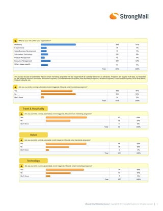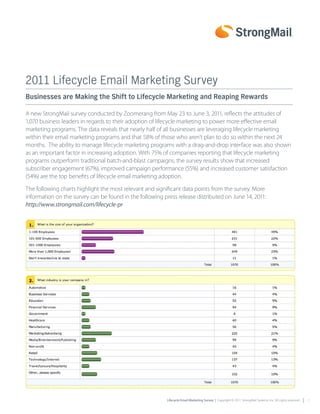 The survey found that nearly half of businesses are using lifecycle marketing in their email programs and 58% of non-users plan to adopt it in the next two years. Lifecycle marketing was shown to outperform traditional campaigns, with benefits including increased subscriber engagement, improved performance, and higher customer satisfaction. The ability to easily implement lifecycle marketing through a drag-and-drop interface could boost its adoption further.