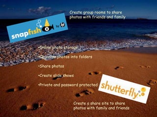 This document provides suggestions for free Web 2.0 tools that can be used to motivate students and make teaching easier. It describes tools for digital storytelling, online bookmarking and file sharing, creating interactive posters and photo sharing, screen recording, microblogging, and creating interactive slideshows. The tools allow sharing work online, leaving notes, uploading files from various programs, creating forms and quizzes, adding voice instructions, and more.