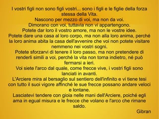 Il documento discute il significato della genitorialità, evidenziando che i figli non appartengono ai genitori ma sono lanciati verso il futuro. Viene presentata una categorizzazione dei fattori di rischio per il benessere dei bambini e si sottolinea l'importanza delle life skills, abilità che aiutano i giovani a gestire le sfide quotidiane e a sviluppare relazioni sociali positive. Viene infine citata l'importanza di educare queste competenze secondo l'Organizzazione Mondiale della Sanità.