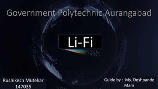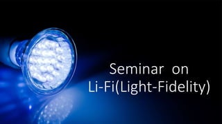 Li-Fi uses light from LED bulbs to transmit data wirelessly. It was pioneered in the 1990s but is now gaining more attention as an alternative to congested radio spectrum networks. Li-Fi works by varying the intensity of LED light faster than the human eye can detect to transmit digital signals. It has applications in traffic lights communicating with cars, hospitals where Wi-Fi can interfere with equipment, airplanes where radio waves don't work well, and under water where Wi-Fi fails. Advantages include higher speeds than Wi-Fi and lower costs since it uses LEDs. It requires line of sight and a light source, whereas Wi-Fi works anywhere. As more devices connect, Li-Fi may provide