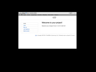 This document discusses web application frameworks and principles. It outlines desired characteristics for web frameworks, including database mapping, request routing, view selection, component-based asynchronous rendering, security, testing, and deployment. Specific frameworks mentioned that exemplify some principles include Rails, Seaside, and Lift. The document also provides information about getting started with Lift and development tools for Lift.