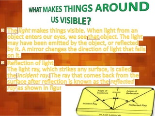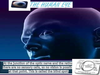 This document discusses common vision defects and how they can be corrected using lenses. Myopia, or near-sightedness, is corrected using concave lenses, while hypermetropia, or far-sightedness, is corrected using convex lenses. The document also notes differences in eye anatomy between various animals, such as crabs having small eyes that allow wide vision, and owls having large corneas and pupils to let in more light as well as more rod cells in their retinas compared to day birds.