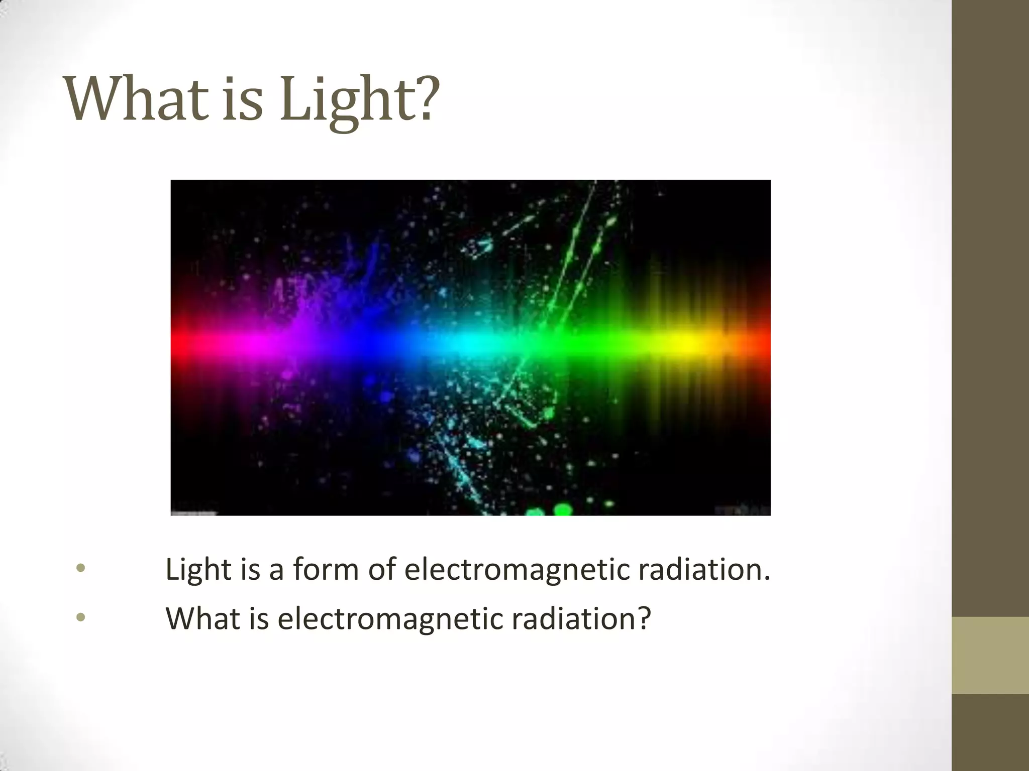 Light is a form of electromagnetic radiation that can be described as a stream of massless particles called photons traveling in wave-like patterns. Electromagnetic radiation includes visible light as well as other wavelengths and includes properties like wavelength, frequency, and speed. Light travels in straight lines and can be reflected, refracted, and separated into colors using a prism. The sky appears blue during the day due to scattering of blue light by dust in the atmosphere.