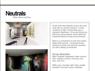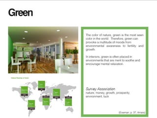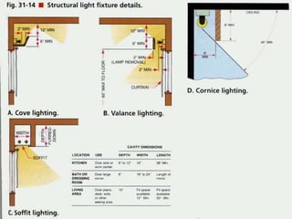 The document discusses the importance of light in architecture and interior design, highlighting its role in enhancing space, human well-being, and visual experience. It differentiates between natural and artificial lighting, detailing various types of artificial light sources and their applications, effects on mood and health, and the significance of light quality. Additionally, it covers specific lighting solutions for different environments, emphasizing the need for appropriate lighting based on various tasks and atmospheres.
