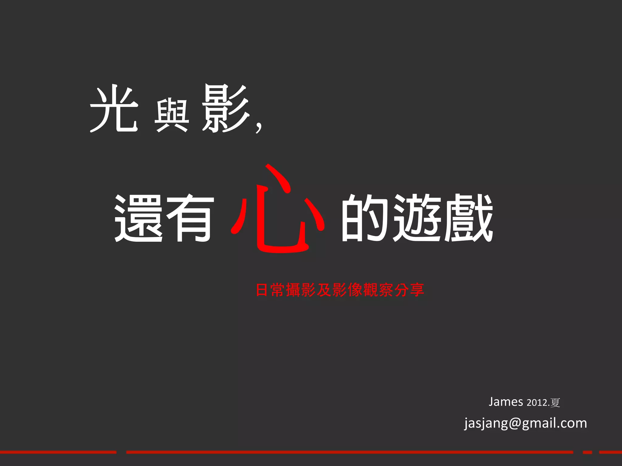 心 的遊戲 日常攝影及影像觀察分享 James 2012.夏 jasjang@gmail.com