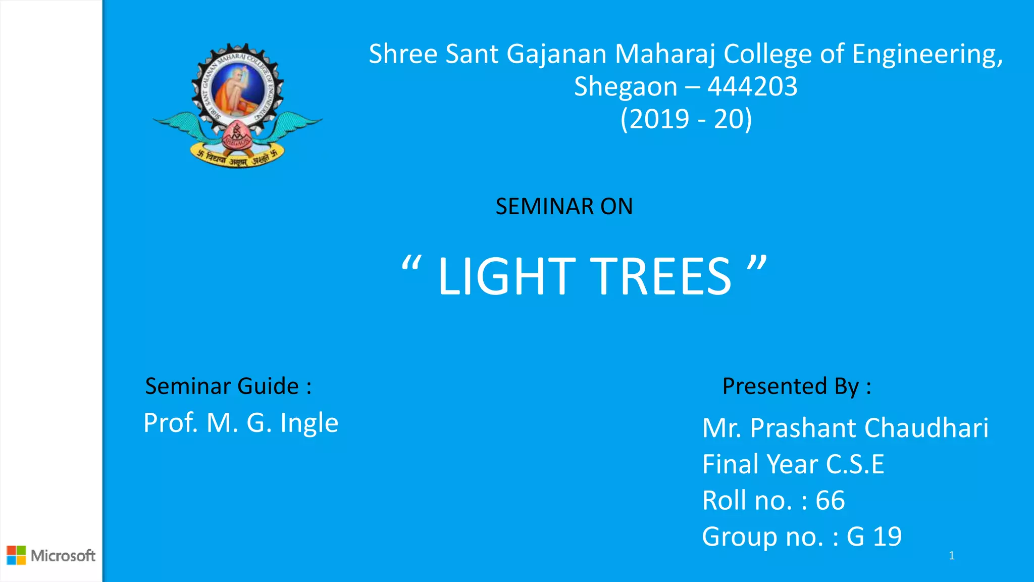 The seminar presentation discusses the concept of light trees in wavelength-routed optical networks, which enhance network throughput and support multicasting applications using wavelength division multiplexing (WDM). It covers physical topologies, types of WDM, comparisons between coarse and dense WDM, and various transmission types including unicast, broadcast, and multicast. The document concludes that WDM WANs based on light trees provide efficient routing of traffic while maximizing bandwidth and minimizing device requirements.
