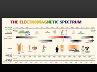 3. Visible light is a small portion of the electromagnetic spectrum, and its wavelength corresponds to color from red to violet with shorter wavelengths having higher frequencies and more energy.