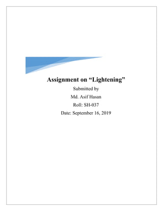 The document discusses lightning's characteristics, including its definition, occurrence, and phases, highlighting that it can strike the Earth 100 times per second and can reach temperatures exceeding 50,000 degrees Fahrenheit. It also outlines the potential dangers of lightning, particularly in Bangladesh where it has been declared a natural disaster, and emphasizes the importance of safety measures during storms. Safety recommendations include seeking shelter, avoiding water bodies, and the implementation of lightning protection systems.