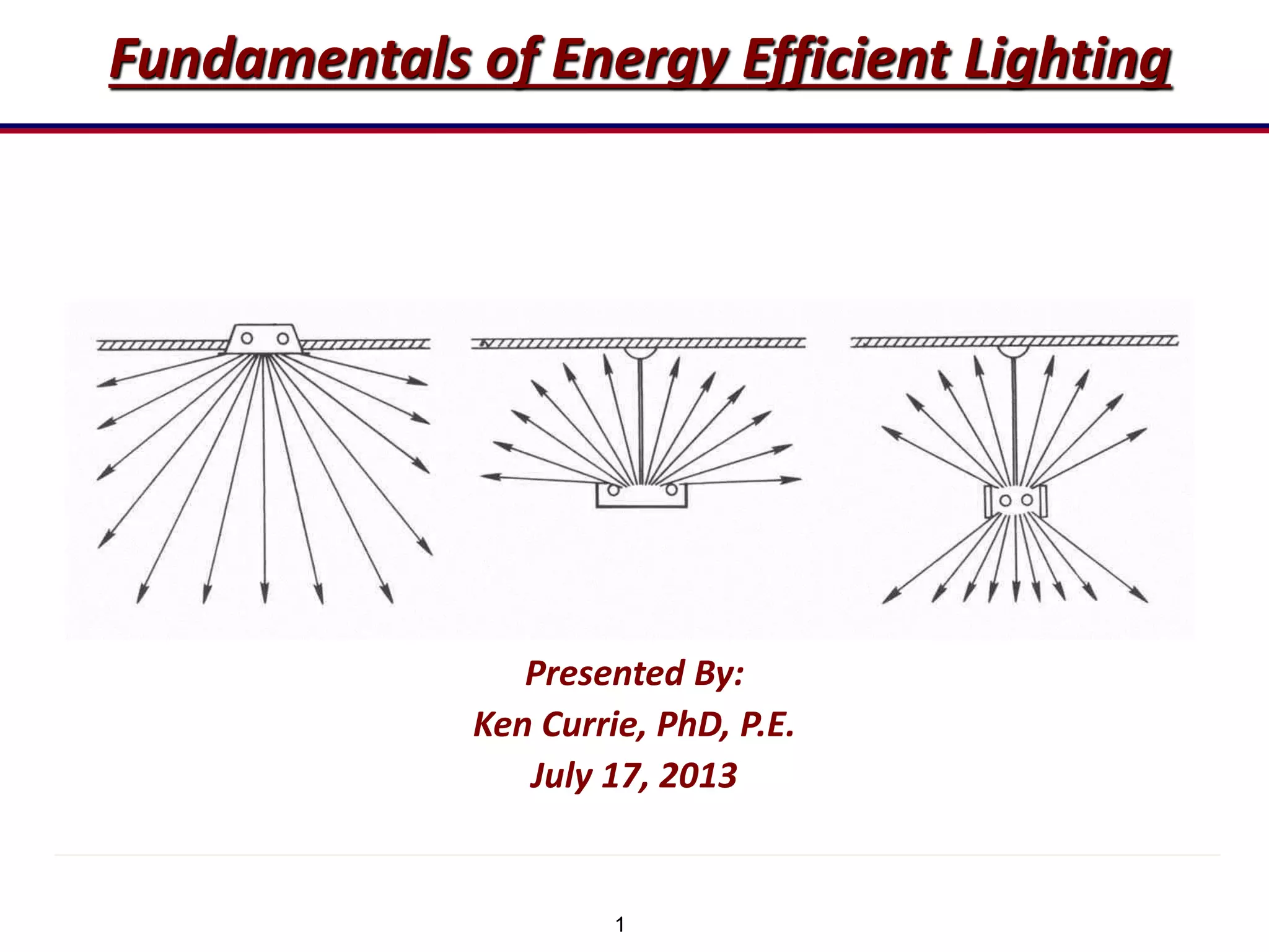 This document provides information on fundamentals of energy efficient lighting. It discusses lighting types and their life cycle costs. It also covers lighting energy efficiency, efficient lighting technologies like LEDs, color temperature, color rendering index, typical efficacies of different light sources, use of reflectors, basic principles of lighting energy management including turning off unneeded lights and proper maintenance, and provides three case studies on lighting upgrades and the associated cost savings.