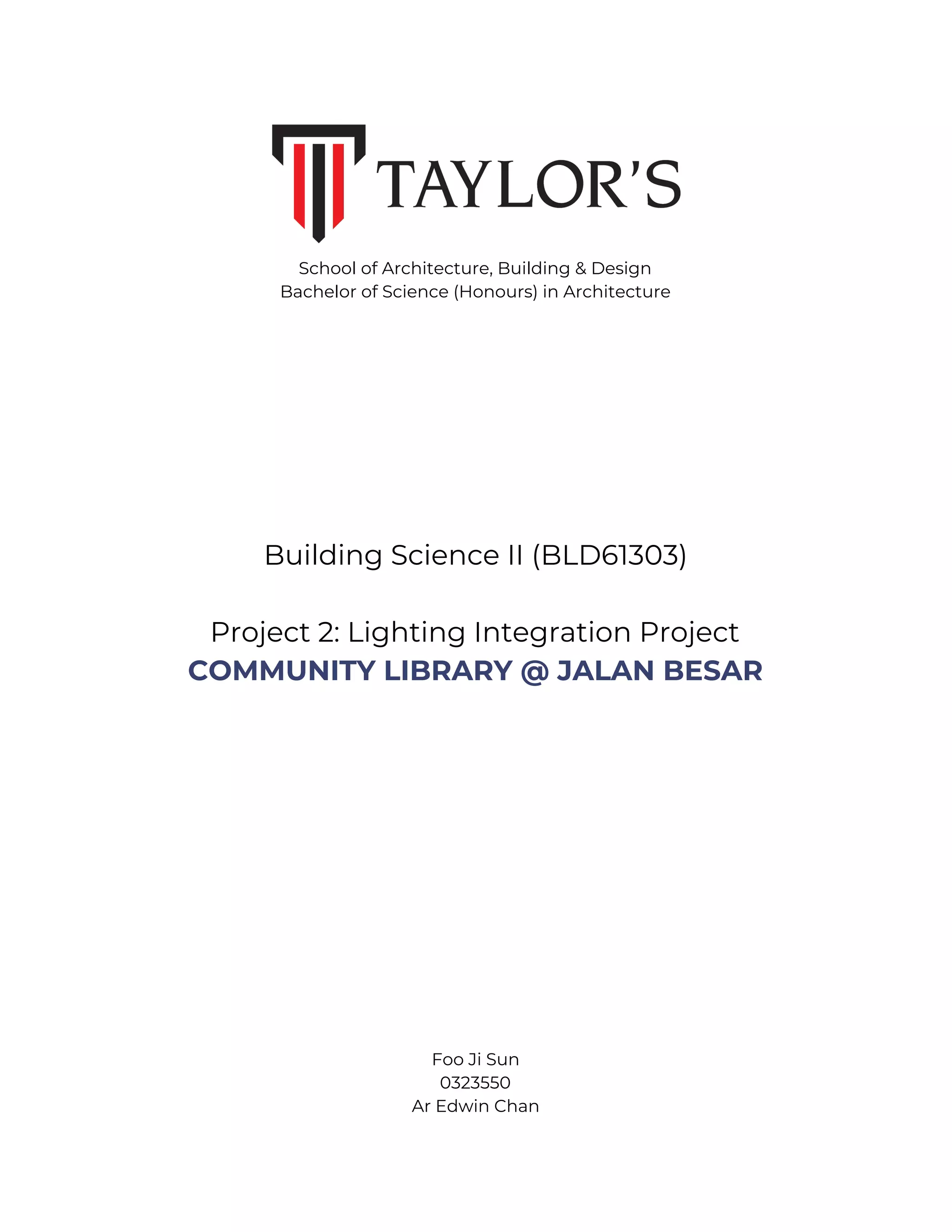 This document outlines a lighting integration project for a community library in Klang, Malaysia. It discusses daylighting and artificial lighting strategies for two spaces - an open reading area (Space A) and a library office (Space B). For Space A, the document calculates the average daylight factor to be 8.223% and determines artificial lighting is needed in the morning. For Space B, the average daylight factor is a poor 0.702%, requiring artificial lighting all day. Layouts, calculations and conclusions are provided for the artificial lighting designs of both spaces to meet illumination standards.