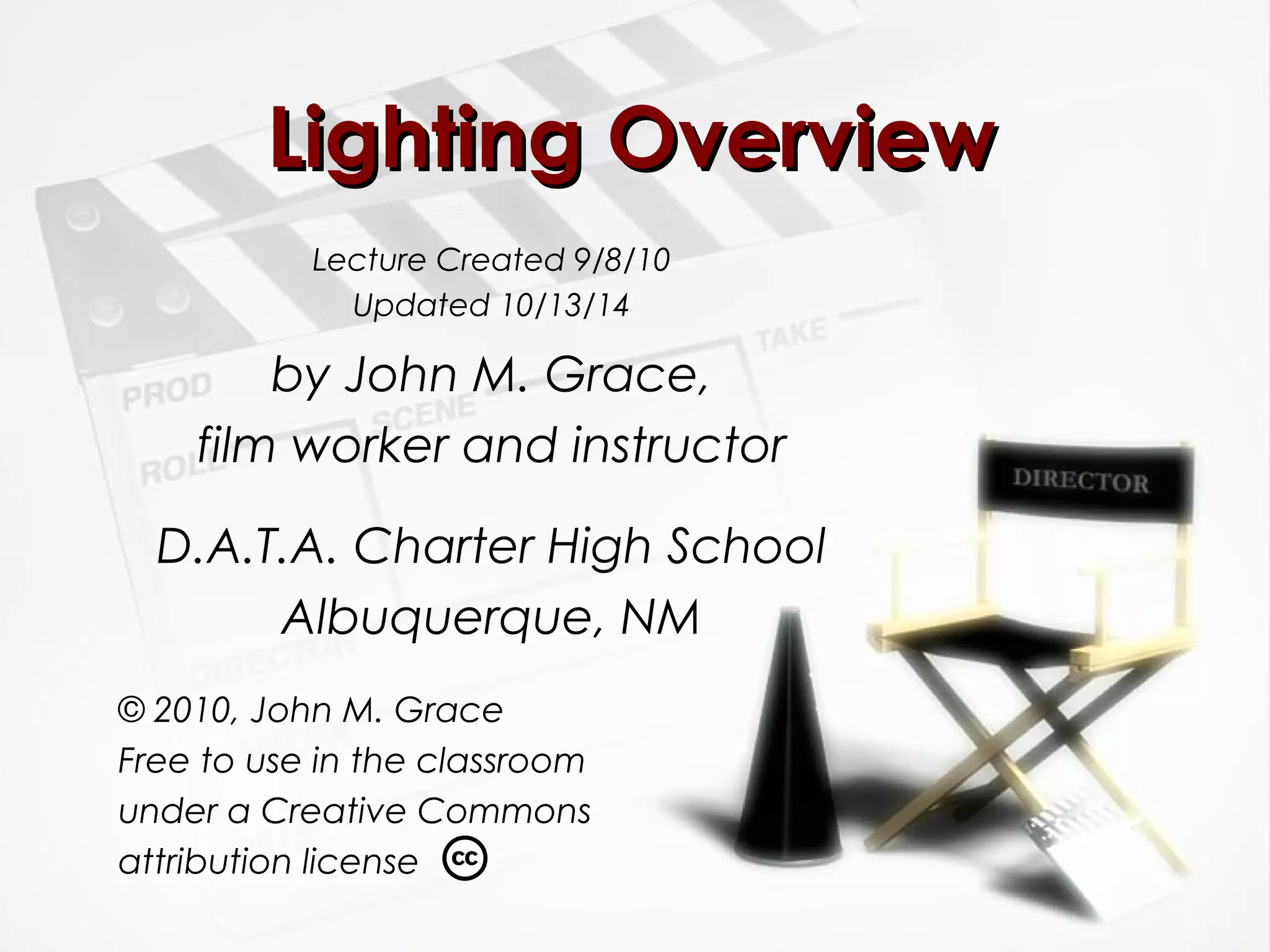 The document provides a comprehensive overview of lighting techniques used in cinematography, focusing primarily on 3-point lighting, which involves key, fill, and back lights. It discusses the types of lighting instruments used, including tungsten, HMI, fluorescent, and LED lights, along with their characteristics and applications. Additionally, it covers important aspects of light such as coherence, color temperature, and intensity, as well as methods for controlling and manipulating light in film production.