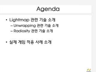 • Radiosity 알고리즘을이용, Lightmap의 각