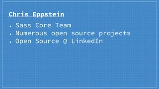 - Eyeglass is a Node.js module that allows Sass modules to be distributed through npm and imported into Sass files. It provides file system access and tools for defining Sass functions in JavaScript.