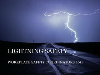 This document provides lightning safety guidelines for workplaces. It advises that if thunder is heard, individuals should go indoors and avoid being outside for at least 30 minutes after hearing the last thunder. While indoors, the document recommends avoiding certain things and provides tips on indoor safety during thunderstorms to minimize lightning risks.