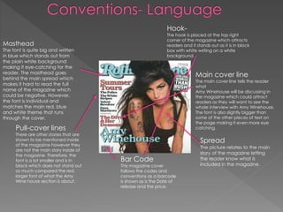 The magazine cover features a close-up shot of Justin Bieber smirking which attracts the target teenage female audience. Additional pictures and text on the cover inform readers that the magazine primarily focuses on Justin Bieber. Bold fonts are used for the masthead and main story text to stand out on the white background. A "FREE" banner and barcode with pricing also follow magazine cover conventions. The large central image and additional details are intended to appeal to the target readership interested in pop music, fashion, and boy bands.