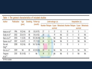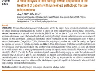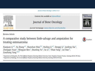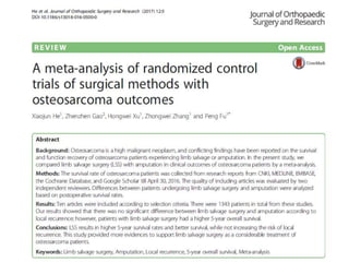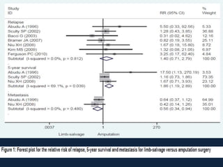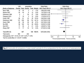 This meta-analysis examined outcomes of limb-salvage surgery (LSS) versus amputation for osteosarcoma. It found:
