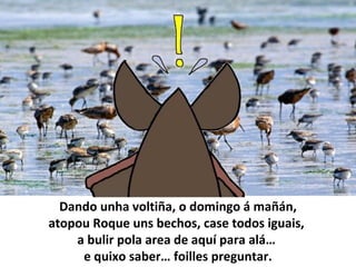 Chamaron a atención de Roque unhas aves que se movían de aquí para alá pola beira da auga e de aquelo xurdeu outro longo traballo para coñecelas e traérnolas a ver.