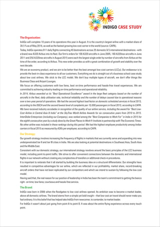 Indigo is India's largest airline, marking its 10th anniversary with a 38.5% market share and a commitment to low-cost, reliable air travel, having received numerous industry awards for service quality. The airline's growth strategy includes expanding its flight frequency and entering underpenetrated markets while focusing on customer experience through innovative advertising and a digital transformation strategy aimed at becoming a travel marketplace. Indigo seeks to strengthen its position as the preferred airline for leisure travelers, addressing the challenge of becoming part of the travel planning process rather than being an afterthought.