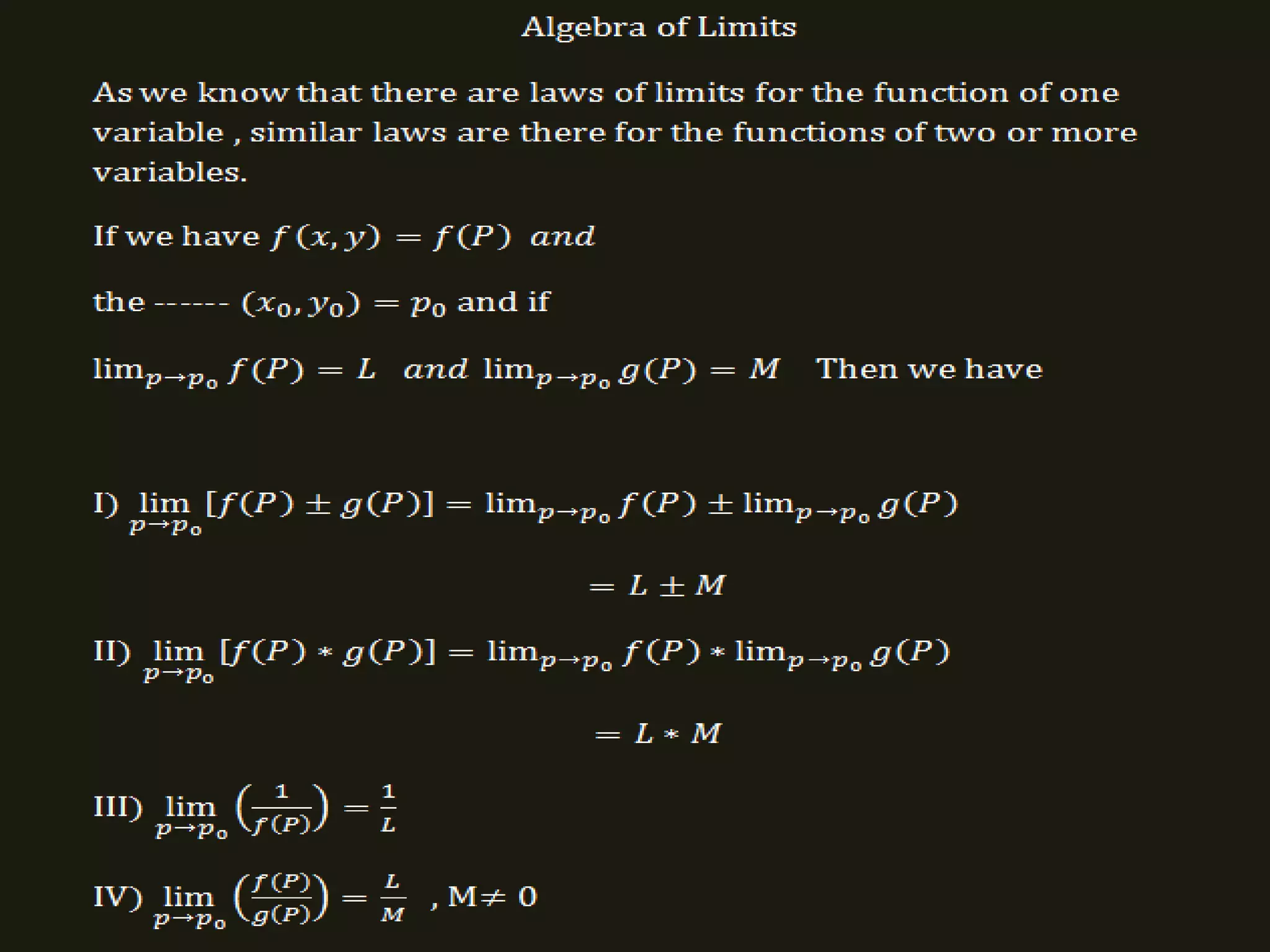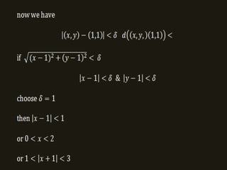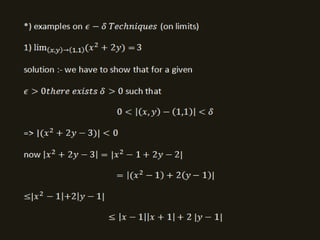 This document discusses limits and continuity for functions of two variables. It was written by Dr. M. V. Dawande from Bhartiya Mahavidyalaya in Amravati. The document examines how to determine limits and continuity for functions with two independent variables.