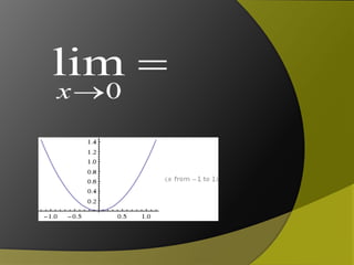 ![Intermediate Value TheoremIf the function is continuous from [a,b], then there must be a point c in the interval [a,b] and it must have a y-value that is between f(a) and f(b)](https://image.slidesharecdn.com/limits-110606081824-phpapp01/85/Limits-17-320.jpg)