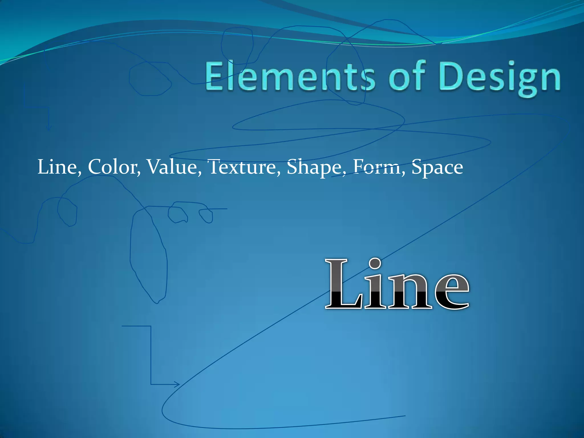 The document discusses different types of lines and their meanings. It describes vertical, horizontal, diagonal, curved, and zig-zag lines and the emotions they can convey such as calm, motion, happiness, and anger. Thick lines are used to emphasize while thin lines show details. Lines are found everywhere and understanding their meanings can provide insight into feelings and emotions.