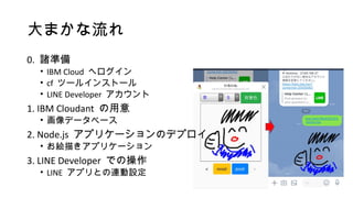 上で動かすアプリケー ション • HTML5 の Canvas 上に(マウスや)タッチでお絵かきするアプ リケーション • 元はこれ : https://github.com/dotnsf/html5pen • マウスイベントやタッチイベントをハンドリングして座標点を線で結 ぶ • POST ボタン送信時に Canvas の内容を画像化して保存し、その URL を指定して LIFF で sendMessages() と closeWindow() を実行し、「画 像を添付して送信し終了」する • ストローク単位のアンドゥ&リドゥまでは実装 • 今日のハンズオンの(ざっくりな)内容はブログでも紹介 • http://dotnsf.blog.jp/archives/1073002287.html • http://dotnsf.blog.jp/archives/1073088825.html