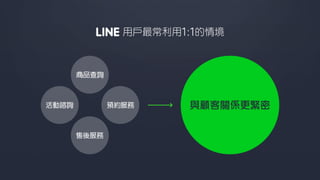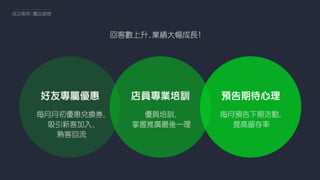 經營熟客 > 招攬新客 4. 好友貴精不貴多 5. 擬人化語氣,就像好友傳來的LINE 把每個顧客當作LINE好友般的用心經營